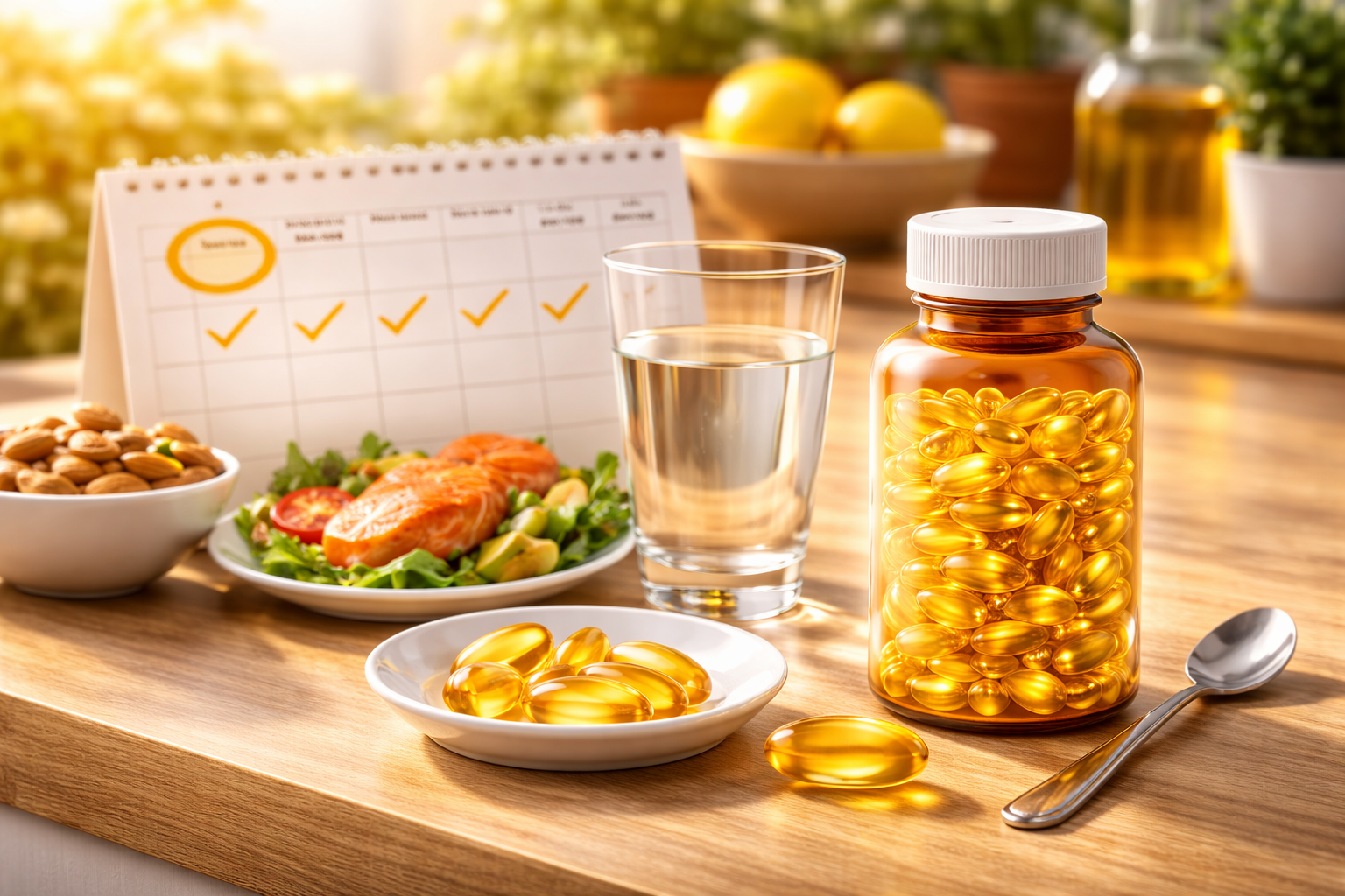 Em termos práticos, a estratégia mais eficiente é ingerir o suplemento junto a uma refeição principal (almoço ou jantar) que contenha alguma fonte de gordura alimentar (ex.: azeite, ovos, abacate, peixes, oleaginosas). Isso tende a aumentar a biodisponibilidade e também reduzir desconfortos gastrointestinais ou refluxo, efeitos ocasionalmente relatados quando o ômega-3 é consumido em jejum.